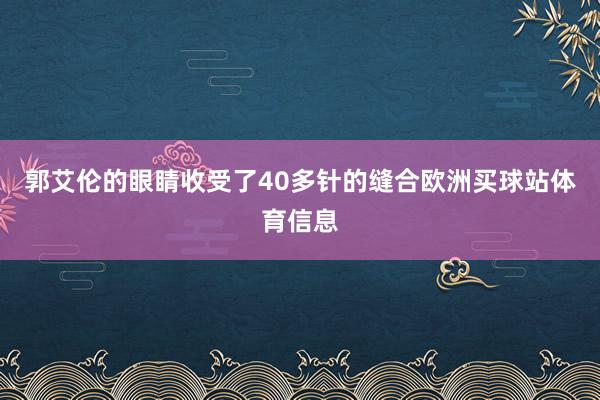 郭艾伦的眼睛收受了40多针的缝合欧洲买球站体育信息