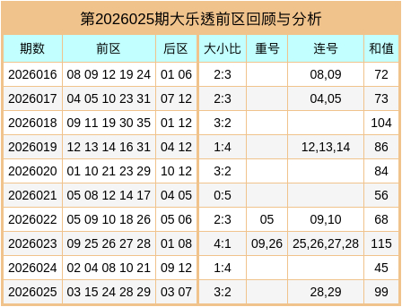 第2026026期大乐透前区讲求与分析