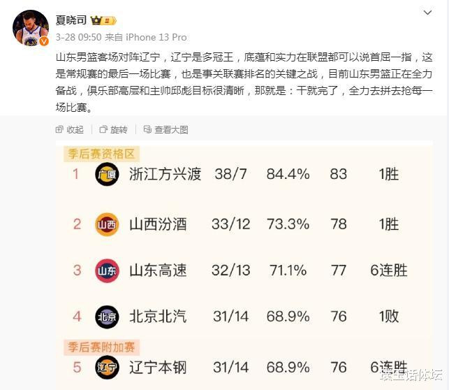距离比赛仅剩一天半技艺,山东男篮的备战动向,也经山东男篮媒体渐渐露馅。28日9点50分,山东媒体记者夏晓司发文表露,此番山东男篮客场挑战辽宁,辽宁算作联赛中的多冠王,岂论是底蕴也曾实力,在定约中齐首屈一指。这场比赛是惯例赛的收官之战,顺利关乎联赛名次。当今山东男篮合座高下齐在紧锣密饱读地备战。俱乐部高层和主帅邱彪的野心十分明确:饱读足劲头,负重致远,拼抢每一场比赛。