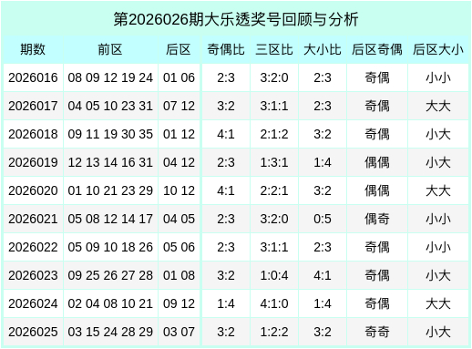 大乐透第26025期开出奖号:03、15、24、28、29 + 03、07。其中前区号码三区比为1:2:2,奇偶比为3:2,大小比为3:2,后区开非凡数+奇数、极少+大数。