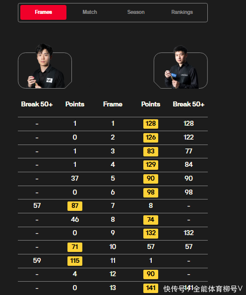历程十几个小时的休息,赵心童与张家玮的第二阶段比赛认真初始。大比分逾期的张家玮在第十局和第十一局,以71-57(57)、115(59)-1连扳两局,比分追成3-8。